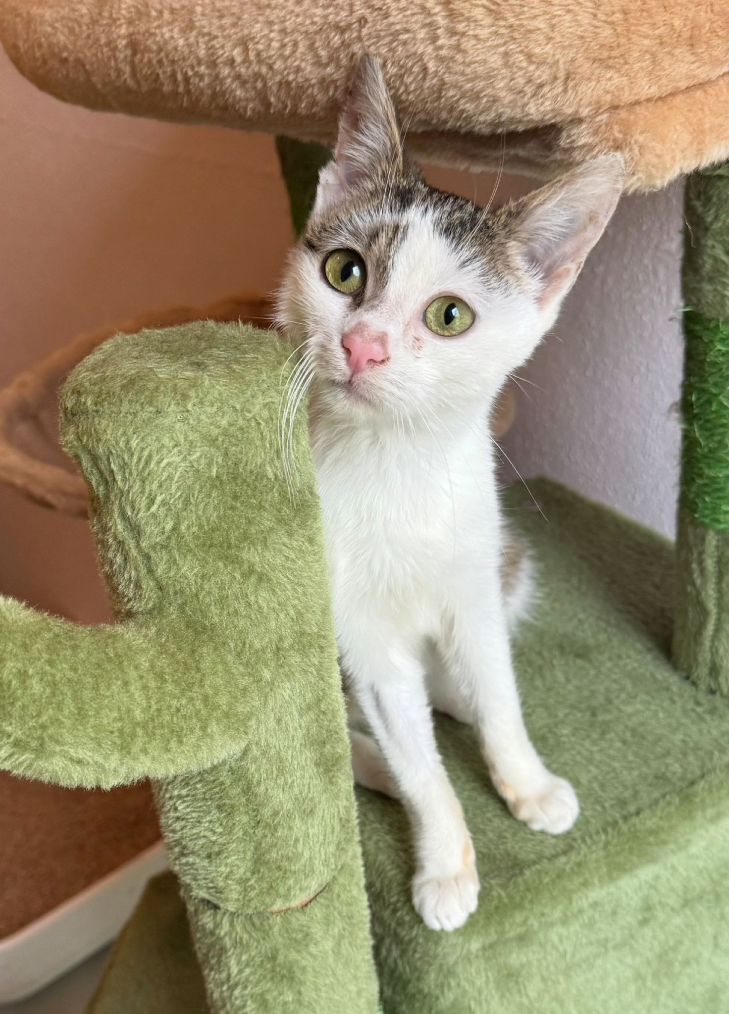 Achtung: Mochi hat chronischen Katzenschnupfen und eine Sehbeeinträchtigung auf dem rechten Auge, er benötigt immer wieder Augentropfen.