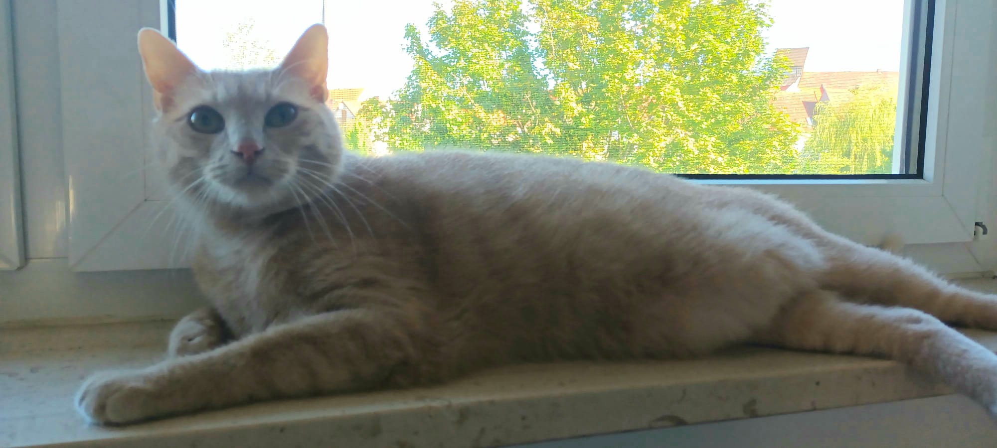 Kater ist acht Jahre alt und kastriert. Er ist Menschen gegenüber sehr zutraulich und verschmust und spielt auch gerne. In seinem derzeitigen Zuhause wird er jedoch von den anderen Katzen unterdrückt und sucht daher ein neues Heim. Bislang hat er nur in der Wohnung gelebt.